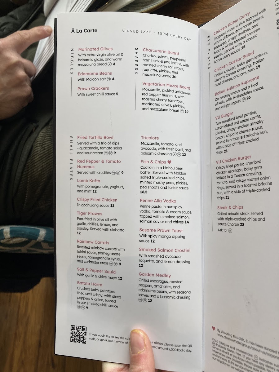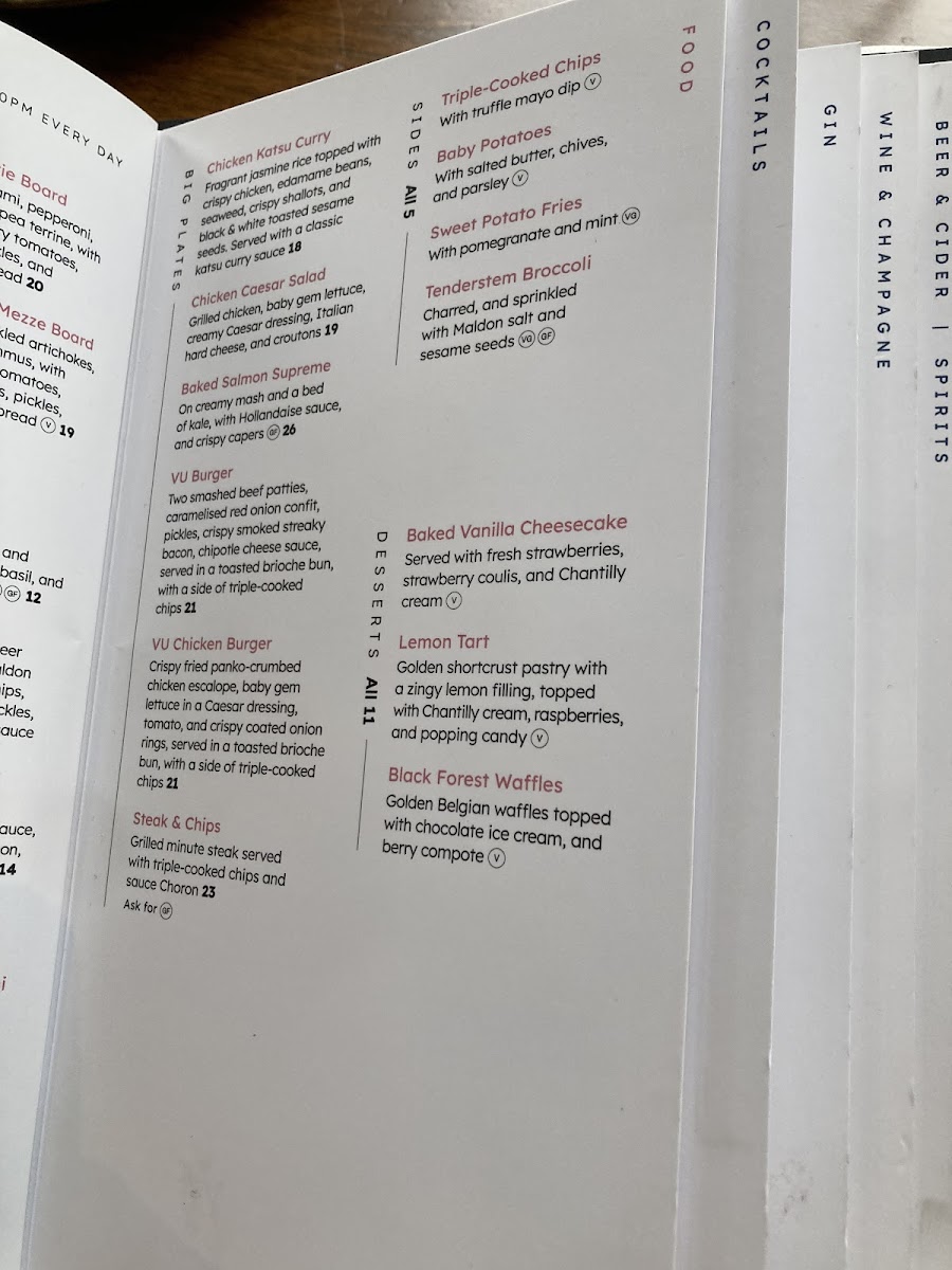 The menu at VU is a delightful exploration of flavors, featuring a range of options that cater to all tastes. Start your culinary journey with enticing small plates such as the Fried Tortilla Bowl or the renowned Salt & Pepper Squid, both priced at £12. If you seek something more substantial, the Fish & Chips (£16.50) stands out as a house favorite, while the Penne Alla Vodka (£14) offers a rich and creamy indulgence. The variety ensures that there's something for everyone, whether you're in the mood for crispy fried delights or a fresh garden medley.